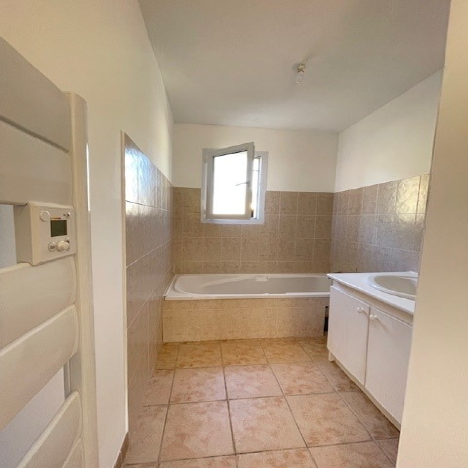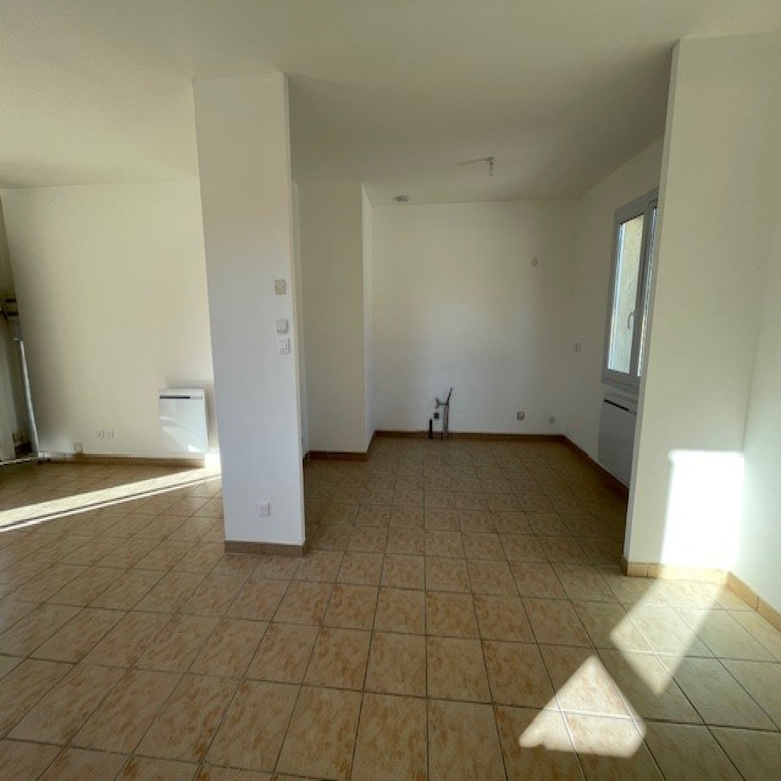 Une belle et lumineuse pièce à vivre de 30m² avec coin cuisine (à aménager) avec accès à une terrasse de 10.76m², un dégagement desservant les trois chambres, une salle de bains et un wc.
