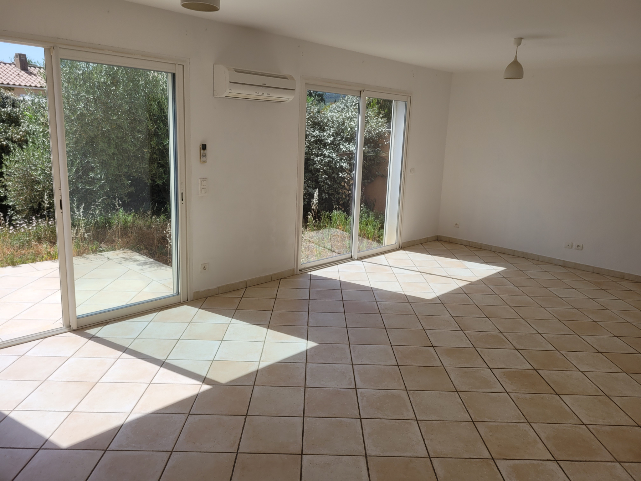 Au rez-de-chaussée : Un porche de 2.46 m² par lequel on accède à la maison, un hall d'entrée de 3.91 m², une pièce à vivre climatisée de 28.08 m² donnant accès à une terrasse exposée Sud de 15.60 m² avec cuisine ouverte de 11.88 m², un cellier de 4.15 m², un dégagement de 1.70 m² desservant une chambre de 10.42 m² avec accès à une terrasse exposée OUEST de 9 m², une salle d'eau de 3.35 m² et un WC indépendant de 1.03 m².